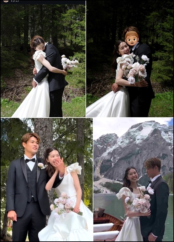 결혼하고 곧 1주년에 멋진 장소에서 잊지 못할 추억을 만들어 주셨습니다'라며 웨딩 사진을 공개했다