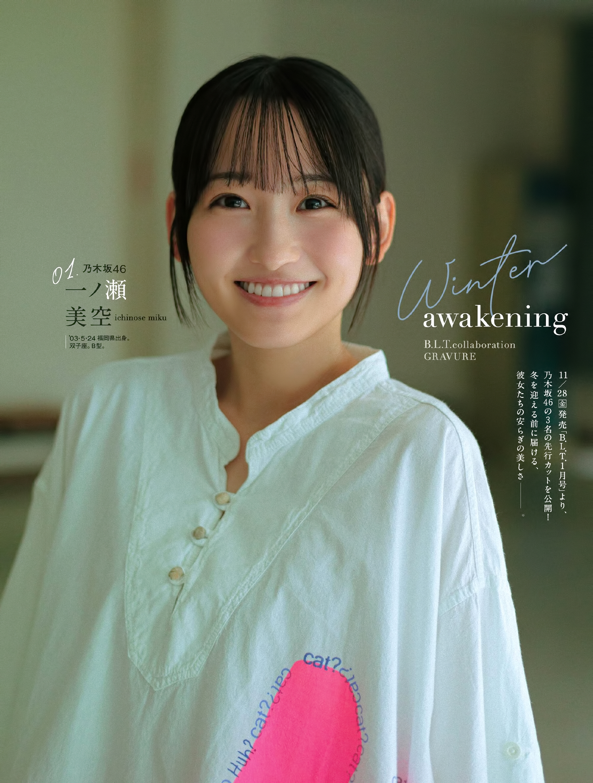 노기자카46 이치노세 미쿠가 솔로로는 처음으로 표지를 장식한 'BLT' 2026년 1월호