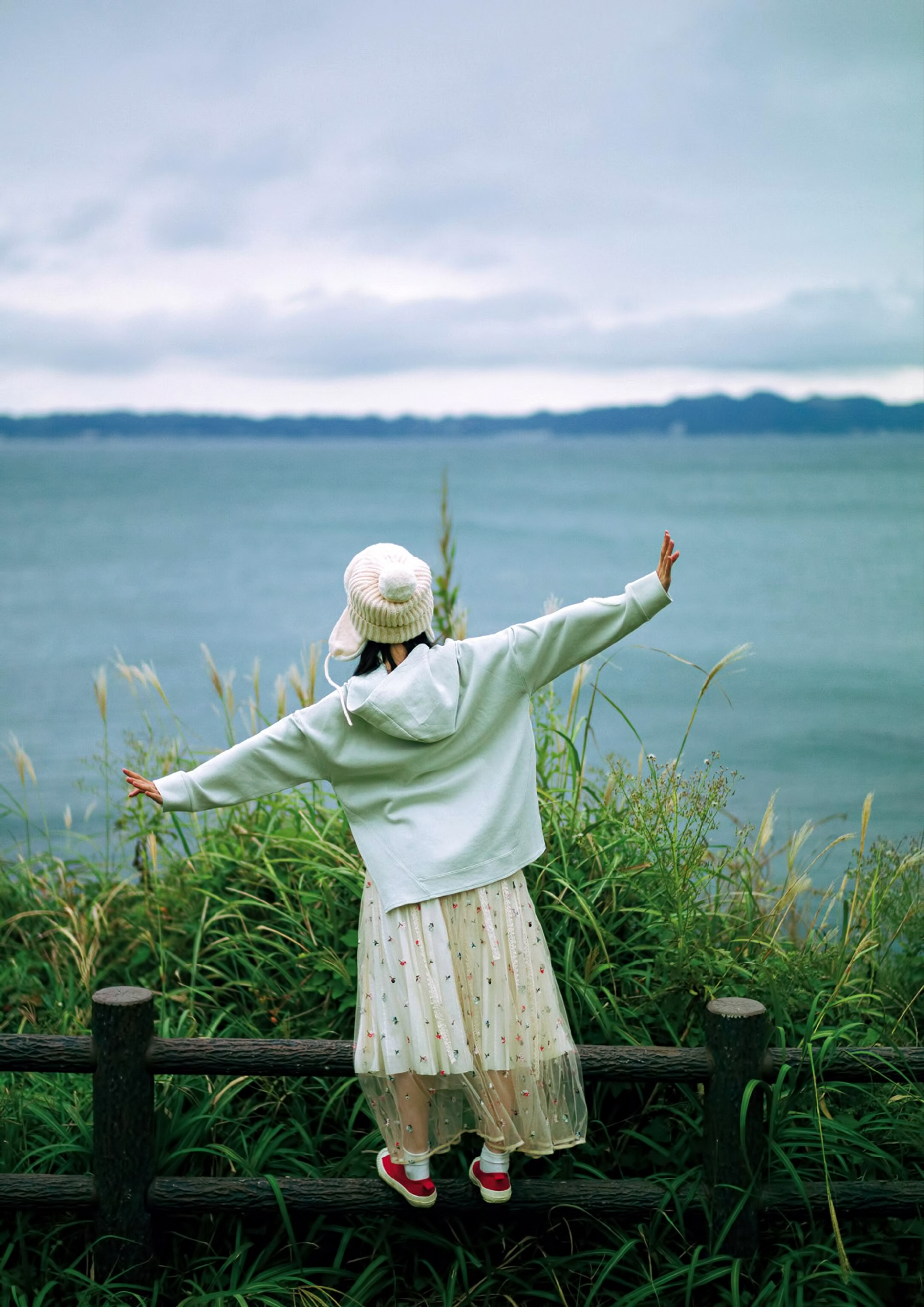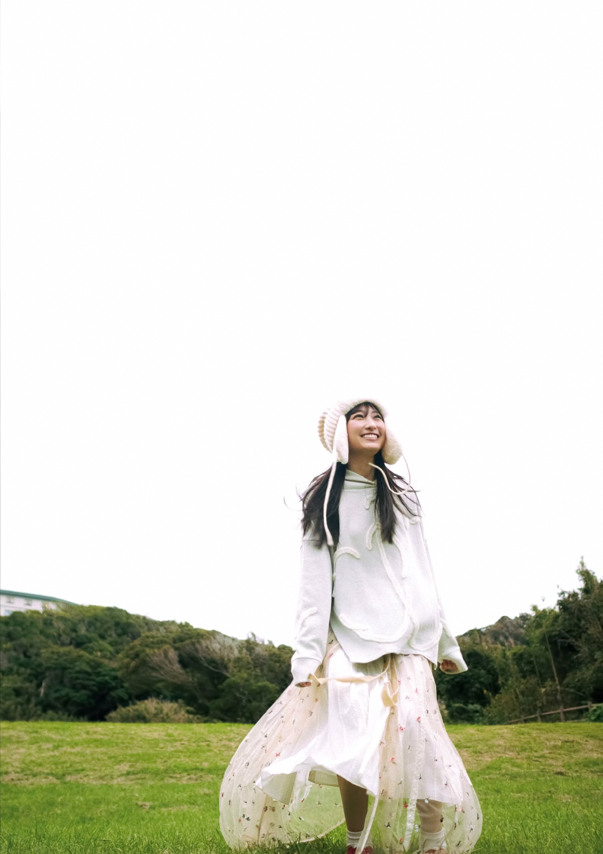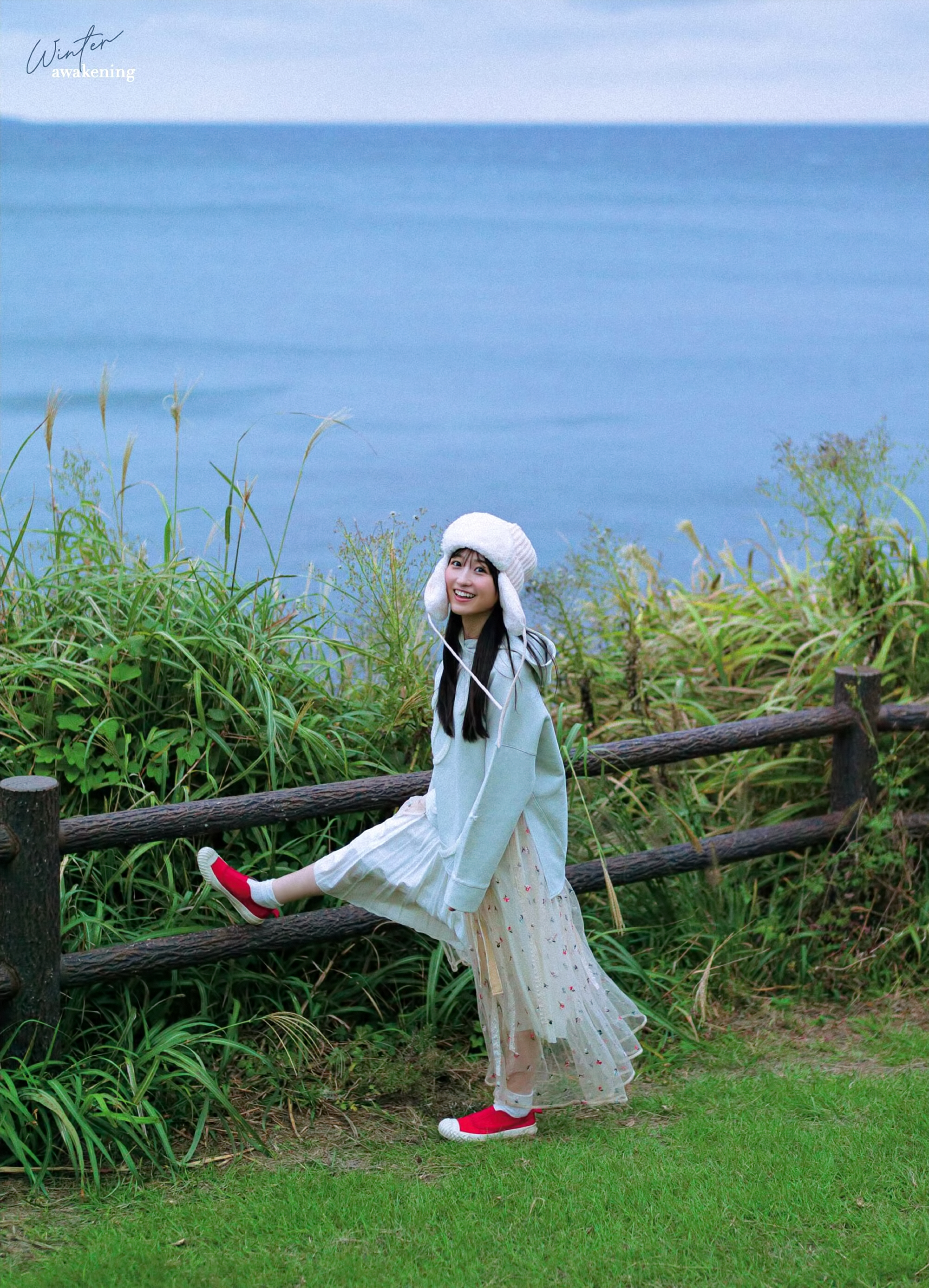겨울 하늘 아래서 카메라를 향해 미소 짓는 샷 등이 공개