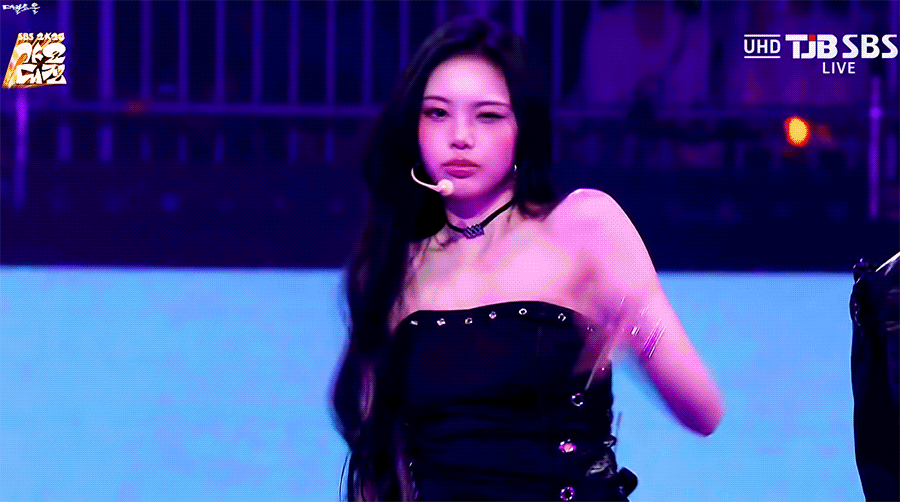2025 SBS 가요대전에서 FOCUS X Dirty Work 무대를 선보인 하츠투하츠