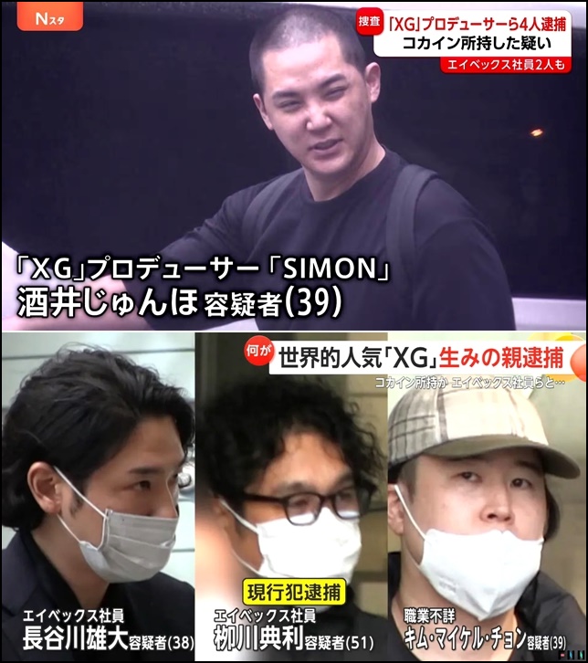 다른 체포자는 야나가와 노리토시(51) 하세가와 유다이(38) 연예 기획사 에이벡스 직원 2명과
